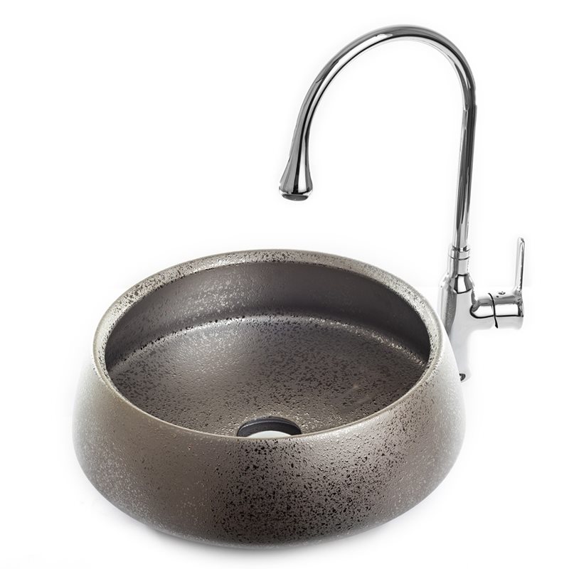 כיור חרס עגול כסף מט, קוני, קוטר 41 ס"מ גובה 14 ס"מ