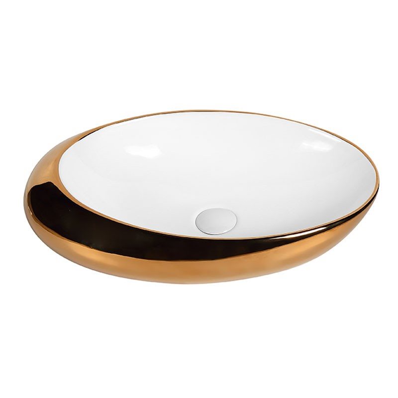 כיור חרס מונח לבן וזהב, 57/36/14 ס"מ