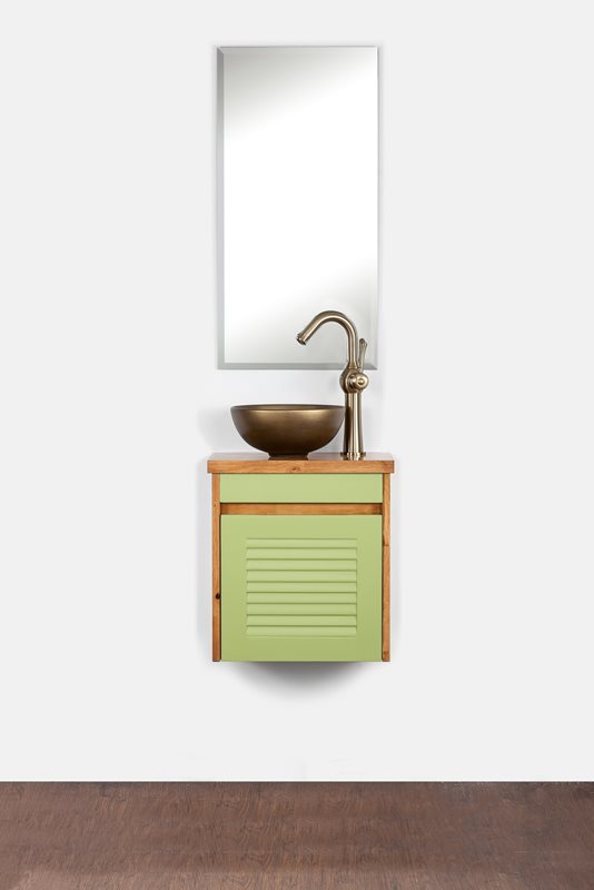ארון אמבטיה דגם שהם עץ מלא בשילוב ירוק