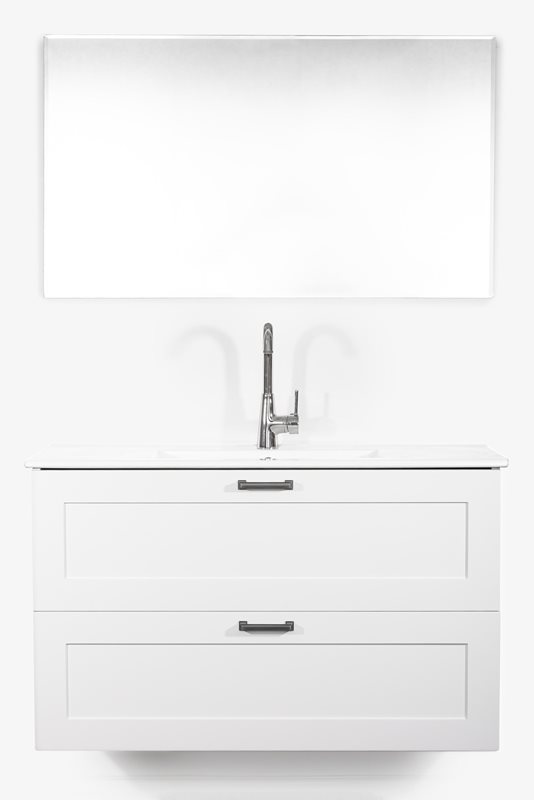 ארון+כיור חרס שקוע +מראת קריסטל מרחפת מלבנית